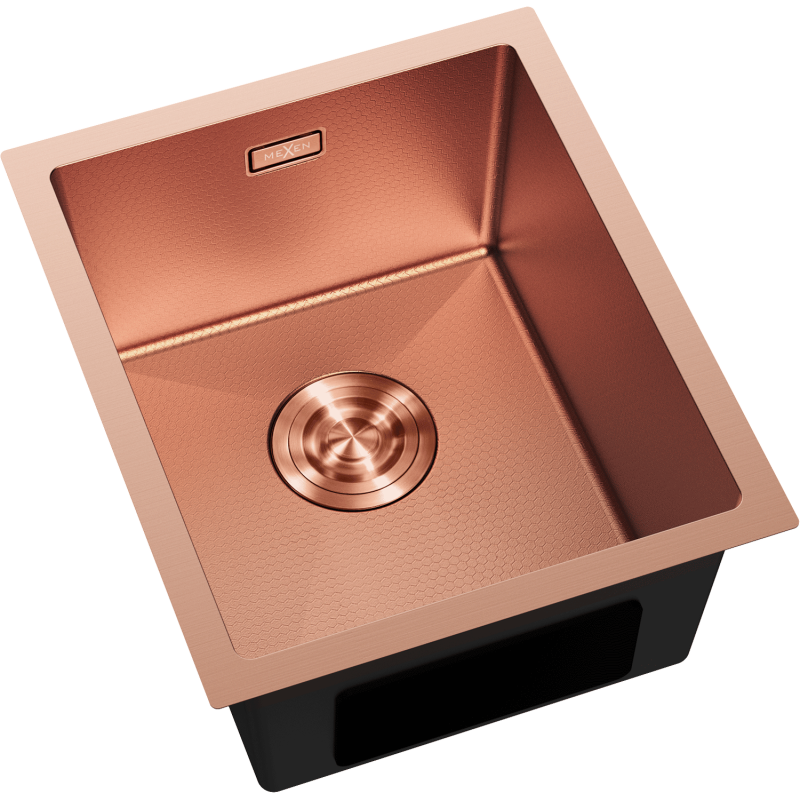 - Mexen Trixo kjøkkenvask med 1 kum, kjøkkenvask 370 x 440 i rustfritt stål AISI 304 med kobberfinish og «bikube»-struktur
