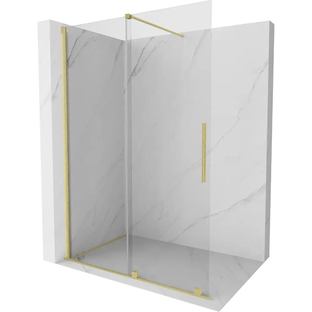 Transformér badet med Mexen Velar dusjvegg 130x200 cm i transparent design med gullbørstet profil. Elegant og funksjonell.