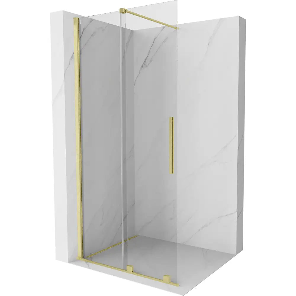 Med sitt transparente glass og gullfargede aluminumsprofiler, tilbyr Mexen Velar dusjdører en touch av eleganse til ethvert moderne bad. Det tykke 8mm herdede glasset sikrer ikke bare sikkerhet, men også en klar og uforstyrret utsikt.