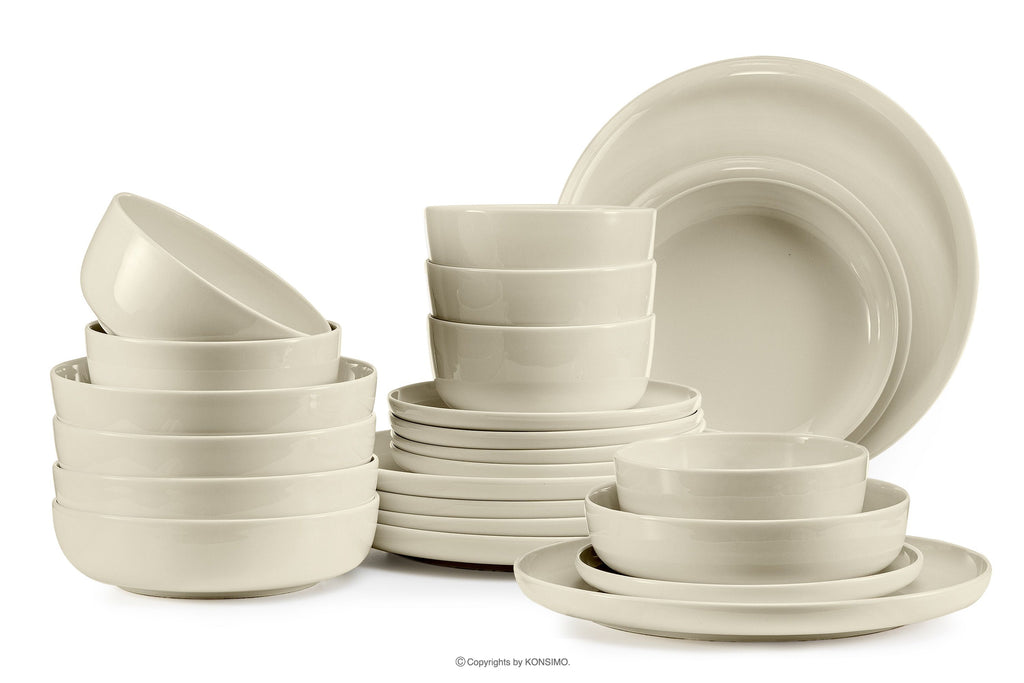 Dette elegante middagservise 6 personer fra KONSIMO sin VICTO-kolleksjon kombinerer tidløs stil med praktisk funksjonalitet. Den beige høyglansen gir et rolig og moderne uttrykk som passer like godt i en nordisk, minimalistisk innredning som i en mer klassisk spisestue. Som et komplett tallerkensett 6 personer i slitesterk keramikk er det laget for både daglig bruk og høytidelige anledninger.