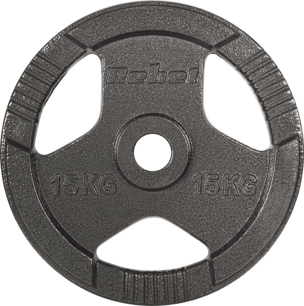 - 2 x støpejern vektskiver Rebel Active, 15 kg hver (totalt 30 kg)