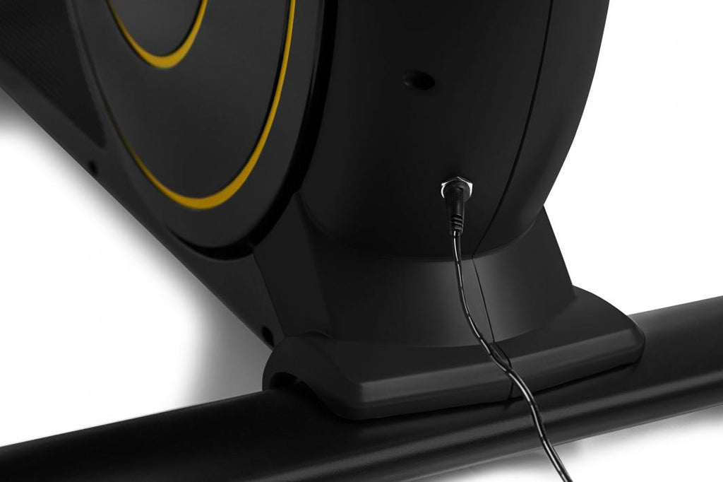 Ellipsemaskinen har et elektrisk magnetisk motstandssystem med et 12 kg drivsystem som gir stille, jevn og driftssikker gange uten rykk. Den solide rammen med brede stabilisatorprofiler og stor egenvekt på 63,3 kg gir høy stabilitet selv ved intensive økter, og maksimal brukervekt er hele 150 kg. Store pedaler med antiskli-overflate, 38 cm skrittlengde og 19 cm avstand mellom pedalene sikrer ergonomisk og trygg bruk.