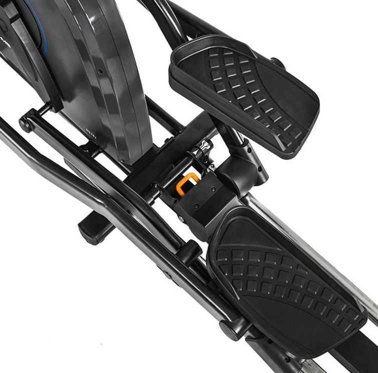 Orbitrek H1742 er en semi commercial ellipsemaskin til hjemmetrening som gir deg treningskvalitet på linje med mindre treningssentre, men i ditt eget hjem. Den magnetiske motstanden og den stabile rammen gjør treningen behagelig og stillegående, noe som er ideelt i leilighet eller felles hjemmegym. Takket være det oversiktlige treningspanelet og de forhåndsdefinerte programmene kan både nybegynnere og erfarne brukere raskt finne et opplegg som passer, enten målet er vektreduksjon, kondisjonsforbedring eller generell styrking av kroppen. Den innebygde viften gir en mer realistisk følelse av luftmotstand, mens høyttalerne og hylle for nettbrett eller telefon gjør det enkelt å kombinere trening med underholdning. Denne orbitrek ellipsemaskin for kondisjonstrening krever ikke tilkobling til strøm under selve treningen, takket være egen generator som drives av muskelkraften din, noe som gjør den fleksibel å plassere i hjemmet eller på kontoret.