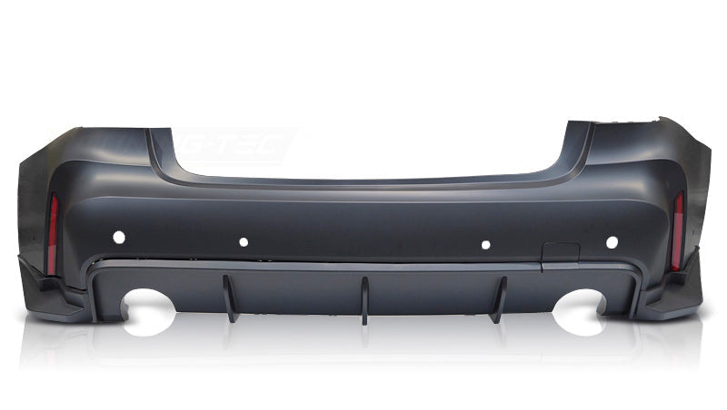 Oppgrader bilen med en robust og presis passform. Bakfanger BMW 3-serie G20 19–22 er laget i polypropylen og har utsparinger for parkeringssensorer (PDC). Denne løsningen i M‑stil leveres med diffusor med dobbel rund utgang (O–O) i matt svart.
