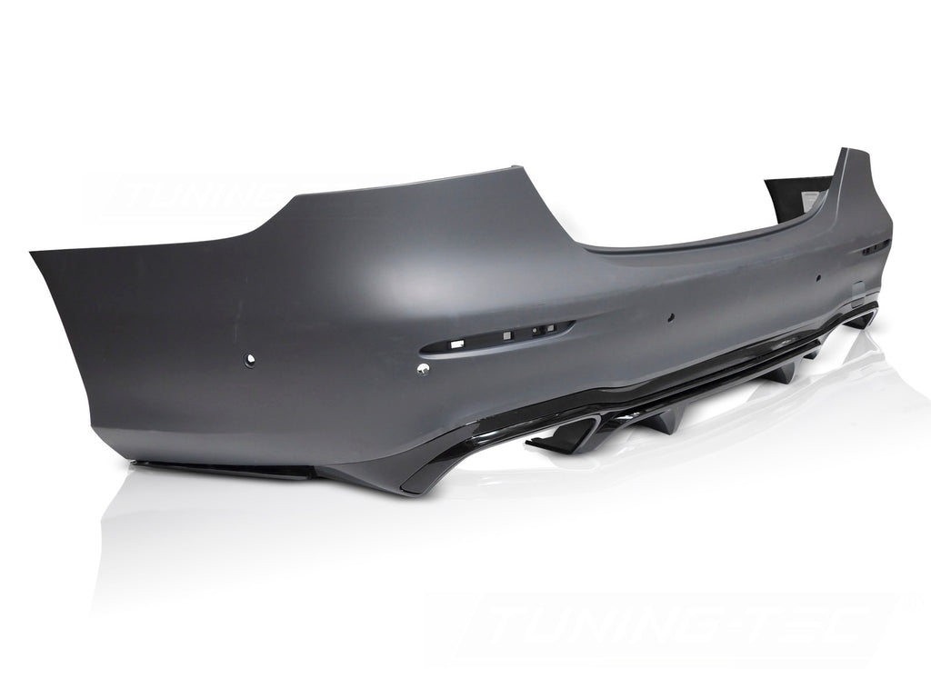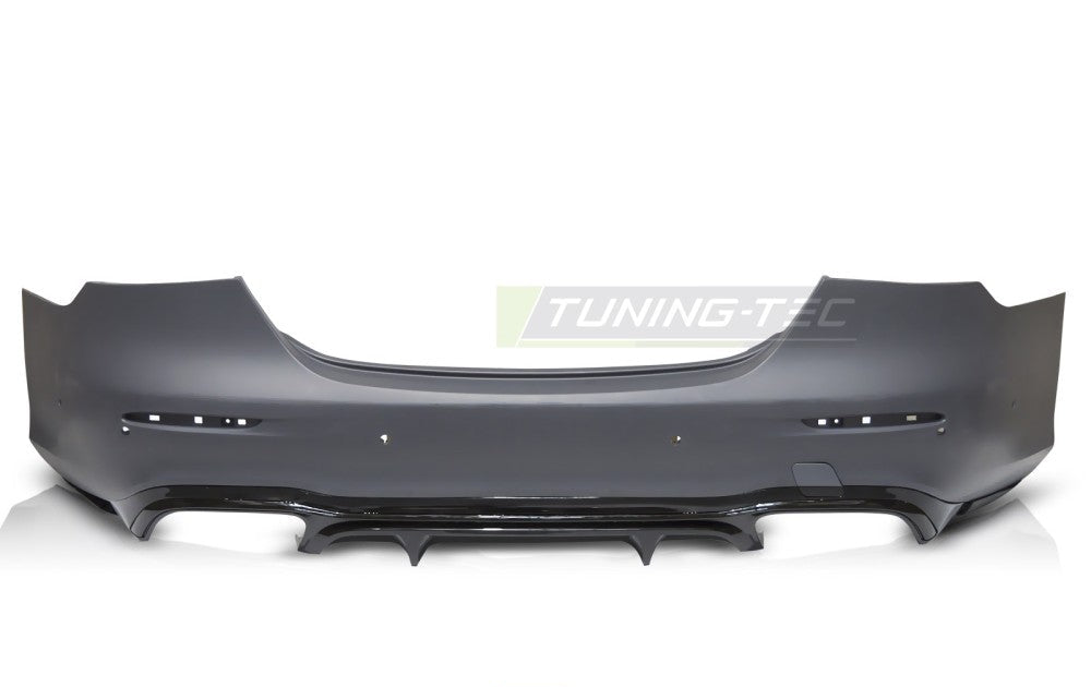 Sport-utgave av bakfanger mercedes e‑class w213 2020–2023 som bakre støtfanger mercedes e‑class w213 2020–2023 og støtfanger bak mercedes e‑class w213 2020–2023 med hull for parkeringssensorer (PDC). Laget av polypropylen for god passform og slitestyrke.