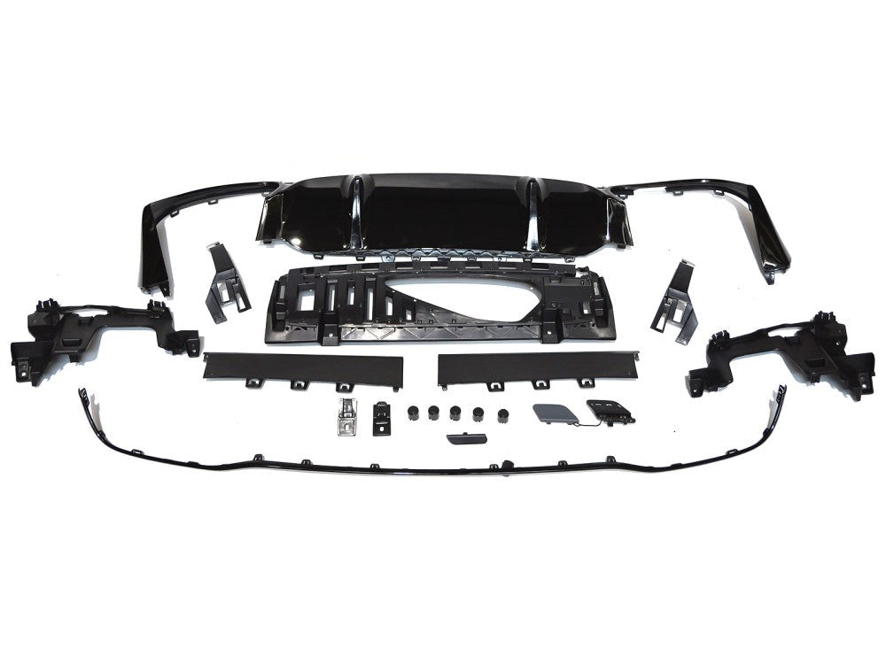 Til erstatning eller styling av original bakfanger på Mercedes E‑Class W213 Limousine (2020–2023). Gir bilen et sportslig uttrykk og er kompatibel med originale parkeringssensorer.
