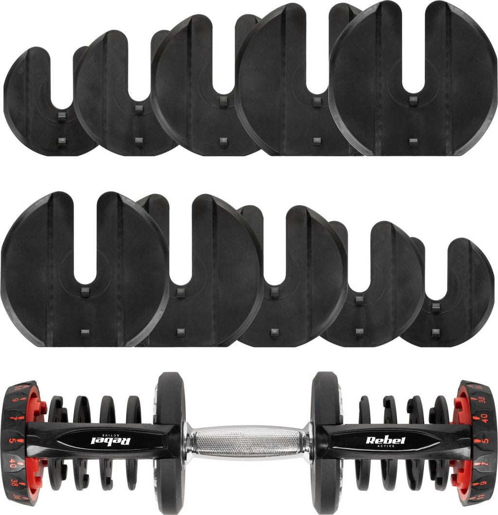 - 1 x Rebel Active RBA-2304 regulerbar hantel 40 kg med støpejernsskiver