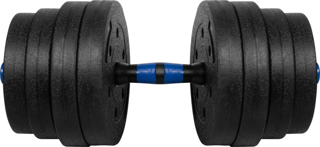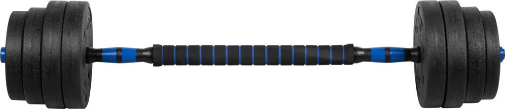 Dette manualsettet på 30 kg består av to korte stenger, en solid 40 cm lang koblingsstang (forlenger) og et stort utvalg av bitumenplater i vekter fra 1,25 til 2,5 kg. I motsetning til støpejern er platene laget av bitumenmasse dekket av slitesterk plast, noe som gir større ytre dimensjoner ved samme vekt, men også mer skånsom bruk på harde gulv. Hver plate har hull med diameter 28 mm, tilpasset de medfølgende stengene. Settet er ideelt for nybegynnere som ønsker manualer sett 30 kg og som vil kunne variere belastningen trinnvis etter behov.