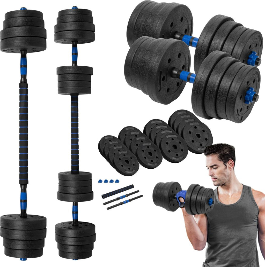 Med disse justerbare manualer for hjemmetrening får du et svært allsidig verktøy for styrketrening uten å fylle opp treningsrommet med mange faste vekter. Du kan raskt endre belastningen ved å kombinere ulike plater, og ved å koble sammen de to stengene med forlengerstangen får du et praktisk sett med bitumenske hantler med stangfunksjon i ett og samme sett. Dette gir deg mulighet til å trene både med to separate manualer og med stang for øvelser som benkpress, knebøy eller roing, og gjør settet velegnet både til korte økter i stuen og mer strukturert trening i et dedikert hjemmegym.