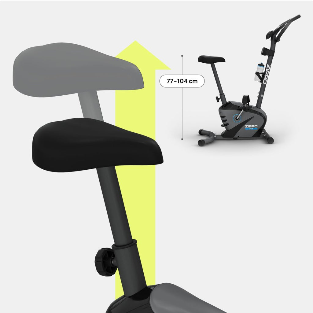 ZIPRO Beat er en kompakt og brukervennlig trimsykkel for effektiv hjemmetrening. Denne stasjonære treningssykkelen er utviklet for deg som vil forbedre kondisjon, gå ned i vekt og styrke musklene uten å forlate hjemmet. Den solide konstruksjonen med brede, godt utformede fotplater gir høy stabilitet under sykling, mens moderne design gjør at sykkelen passer naturlig inn i stue, treningsrom eller soverom. Som en magnetisk trimsykkel til hjemmetrening gir ZIPRO Beat jevn og stillegående motstand, slik at du kan trene når som helst på dagen uten å forstyrre andre.