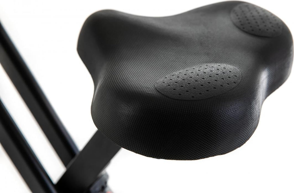 Denne ergometersykkelen for effektiv kondisjonstrening bruker et magnetisk motstandssystem med manuell justering i 8 nivåer, slik at du enkelt kan tilpasse belastningen til ditt treningsnivå. Den innebygde treningscomputeren med LCD‑display viser tid, hastighet, distanse, totaldistanse (ODO), kaloriforbruk og puls. Håndtakene på styret har innebygde pulssensorer som gjør det mulig å følge med på hjertefrekvensen under hele økten. Den sammenleggbare rammen, stabile stabilisatorer med nivåregulering og transporthjul foran gjør sykkelen enkel å bruke selv i små leiligheter. Pedaler med antiskli-overflate og justerbare stropper holder føttene trygt på plass, mens det høydejusterbare setet med EVA-skum sørger for god sittekomfort.