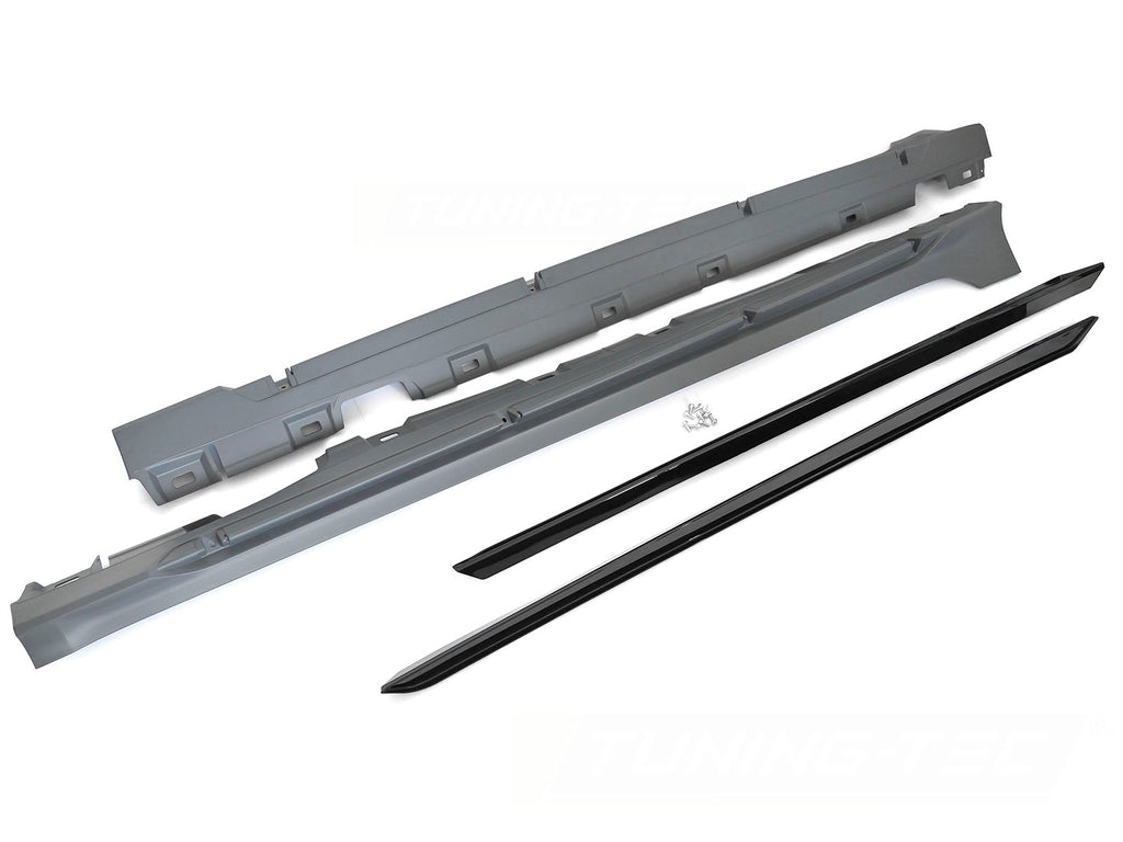 - Produsert i slitesterk polypropylen (PP) – lett og motstandsdyktig, ideelt som Sideskjørt sett Audi A5 F5 2019–2023.
