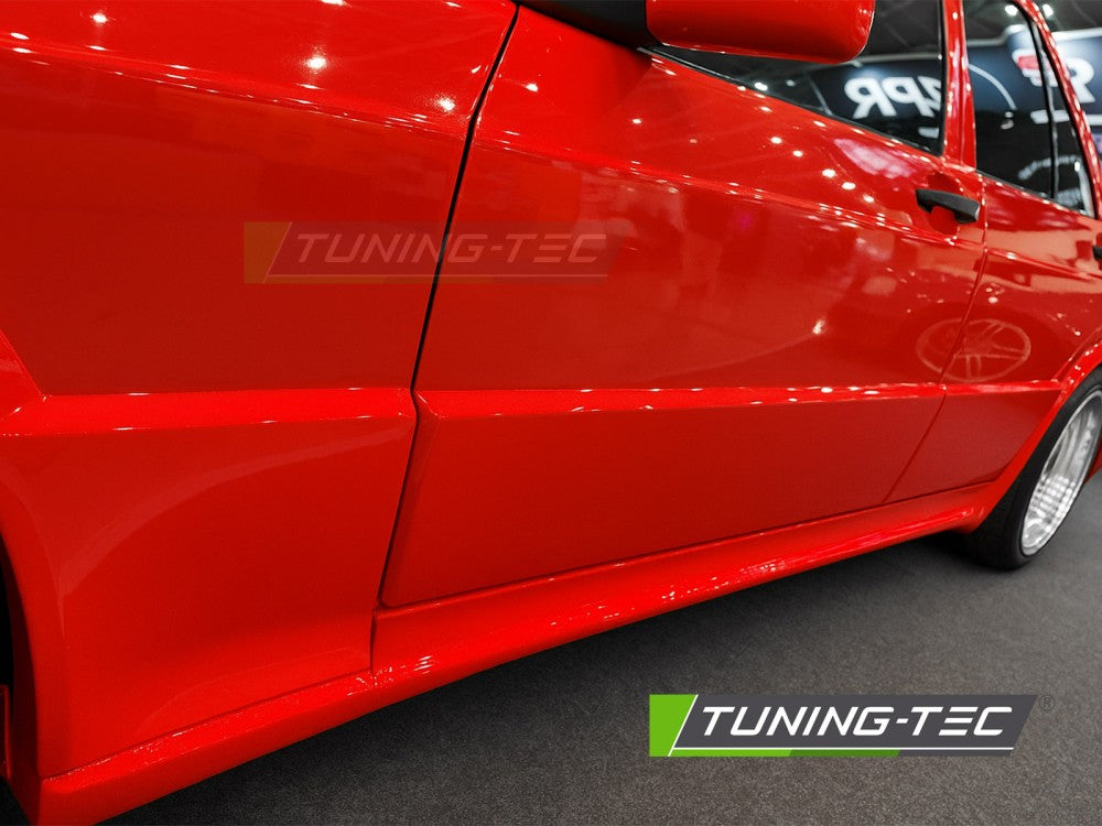 - 1 × sett med Sideskjørt Mercedes 190E W201 1982–1993 og Dørpaneler Mercedes 190E W201 1982–1993 i SPORT STYLE.