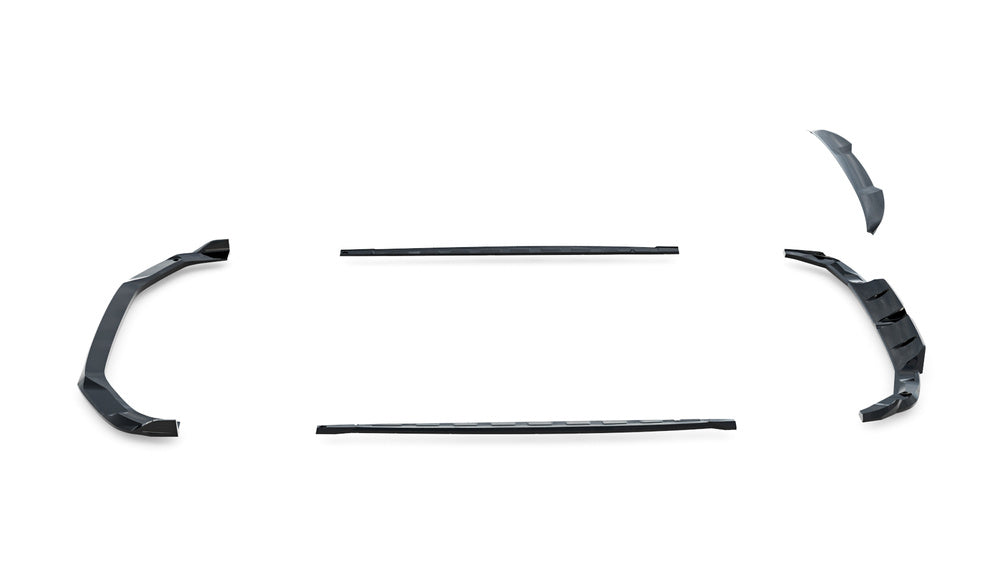 Komplett splitter-sett for Audi RS3 Sportback 8Y Facelift (V2): frontsplitter, sideskjørt-forlengere, bakre splitter m/diffusor, samt spoiler cap.