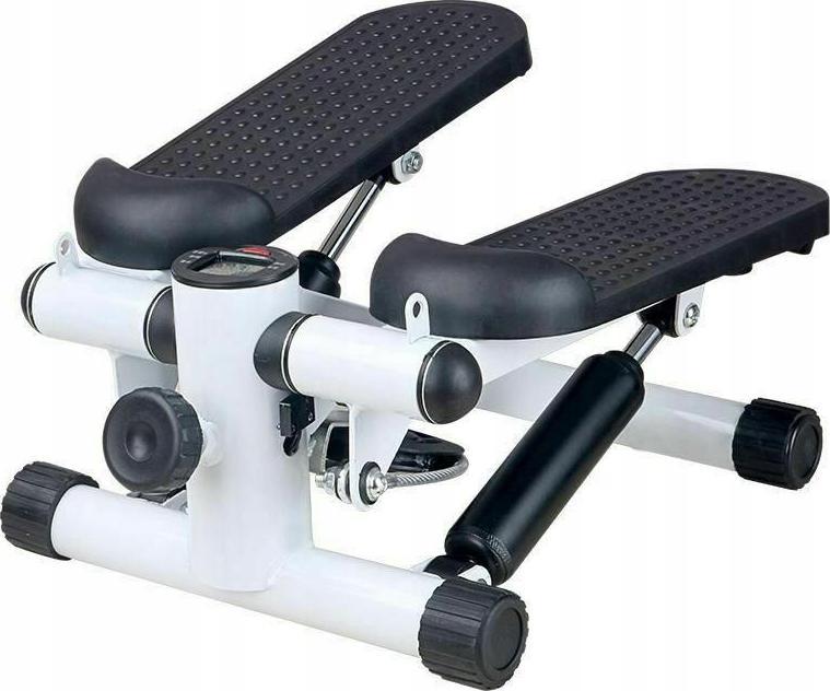 Denne stepperen har to bevegelige trinnplattformer med gummiert, sklisikker overflate som gir trygg og stabil fotplass under trening. Motstanden genereres av hydrauliske sylindere som sørger for jevn og relativt stillegående bevegelse. Motstandsnivået kan justeres med et praktisk reguleringshjul, slik at både nybegynnere og mer erfarne brukere kan tilpasse treningen. Med de elastiske treningsstrikkene festet i solide fester kan du samtidig trene armer, skuldre, bryst og øvre del av kroppen, noe som gjør dette til en mini stepper med strikker og display som gir helkroppstrening på liten plass.
