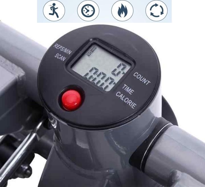Stepper 810 fra Stepper er en kompakt, skråstilt stepmaskin utviklet for effektiv hjemmetrening av hele kroppen. Denne mini-stepperen har en vridende bevegelse som minner om å gå på skøyter eller rulleskøyter, og gir et mer intensivt stepper-treningsoppsett enn en tradisjonell, rett stepmaskin. Designet er stabilt og robust med brede, komfortable pedaler med sklisikker overflate, og den medfølgende antisklimatten beskytter gulvet i stue, soverom eller hjemmegym. Med elastiske treningsstrikker kan du trene både bein, rumpe og overkropp på samme tid, mens det innebygde displayet hjelper deg å holde oversikt over tid, steg og kaloriforbrenning, slik at du får en praktisk stepmaskin med display for kaloritelling til daglig bruk hjemme.