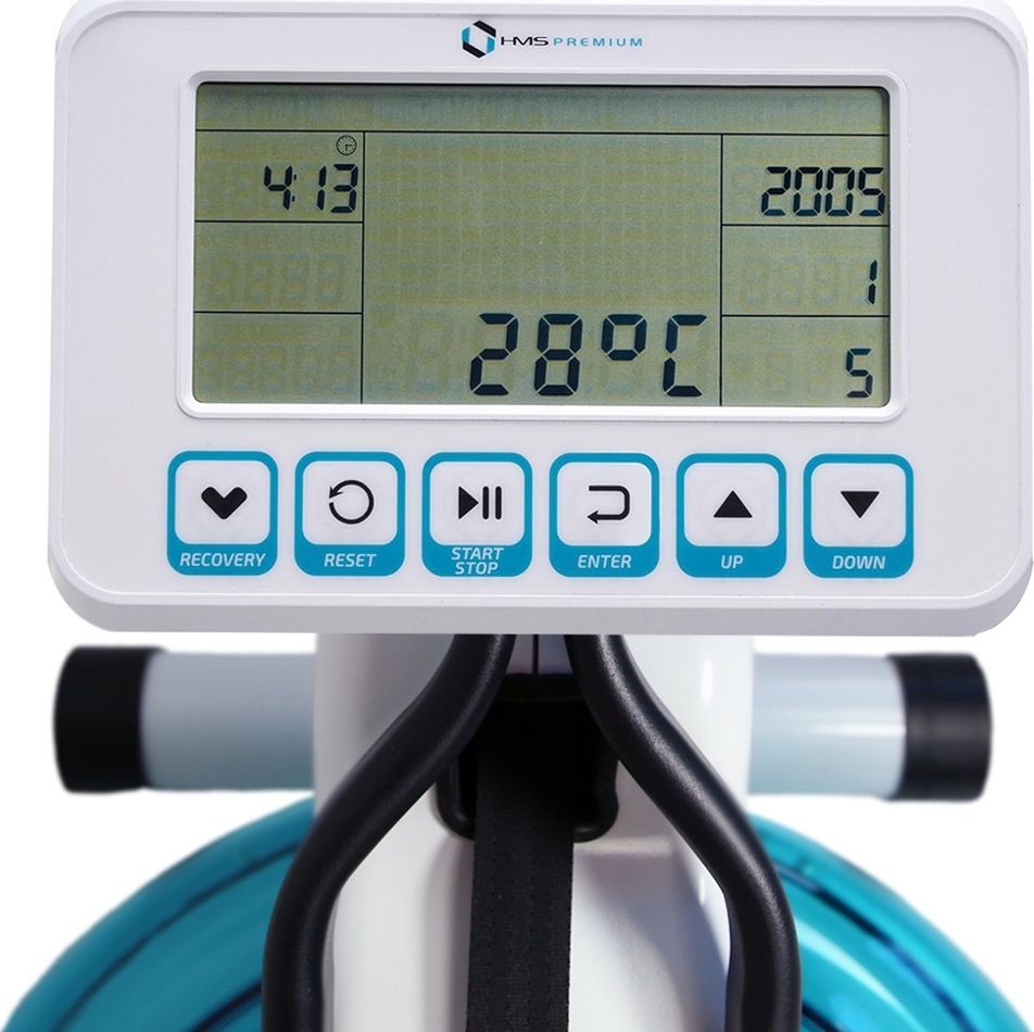 Denne romaskinen med vannmotstand genererer motstand gjennom bevegelsen av årene i et vannreservoar. Motstanden tilpasser seg automatisk kraften du legger i takene, slik at både rolige, rehabiliterende økter og svært intensiv trening føles naturlig. Romaskinen har 9 trinns motstandsjustering, markert med linjer på tanken, der reguleringen skjer ved å fylle eller tappe vann. Under trening hører du en behagelig susing av vann, som skaper en realistisk roopplevelse. En innebygd treningscomputer med LCD-skjerm viser blant annet tid, distanse og puls når du bruker det medfølgende pulsbelte, noe som gjør ZW1600 til en water rower romaskin med pulsbelte som gir god oversikt over treningen.