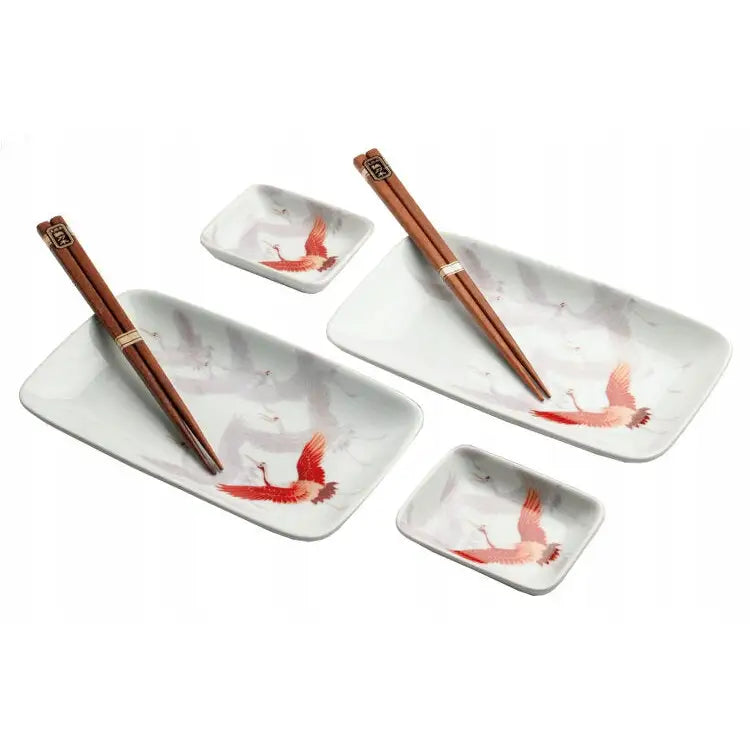 Sushi Keramikksett med Crane Motiv, Komplett for 2 Personer