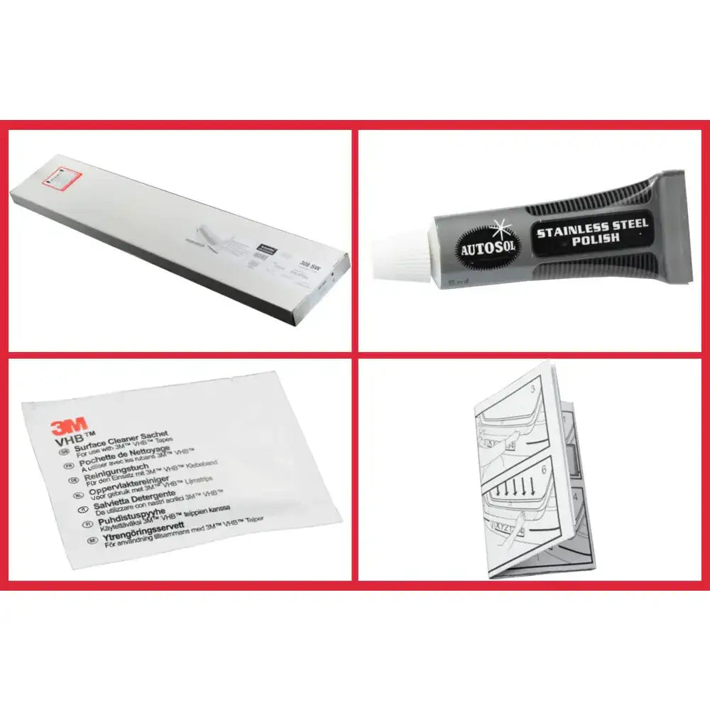 Addisjon: poleringspasta tube, avfettingsklut 3M, bruksanvisning