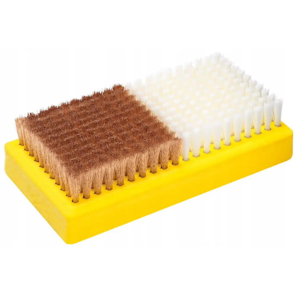 Den sterke kobberdelen av børsten fjerner inngrodd skitt, mens nylonbørstene polerer overflaten skånsomt, noe som etterlater en eksepsjonell finish.